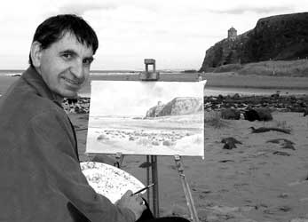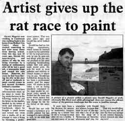 Gerald Maguire, now residing in Castlerock, was walking back to his house from Belfast City Centre where he worked, something he had done many times from leaving school. Only this day, now 10 years ago, Gerald felt apprehensive and unsure of why he was being overcome by a feeling of restlessness; after all he had a good job, a reasonable wage and owned his own house. However, for many years he had been fleeing the city on his days off and at weekends to paint coastal scenes in and around Northern Ireland's coastline.